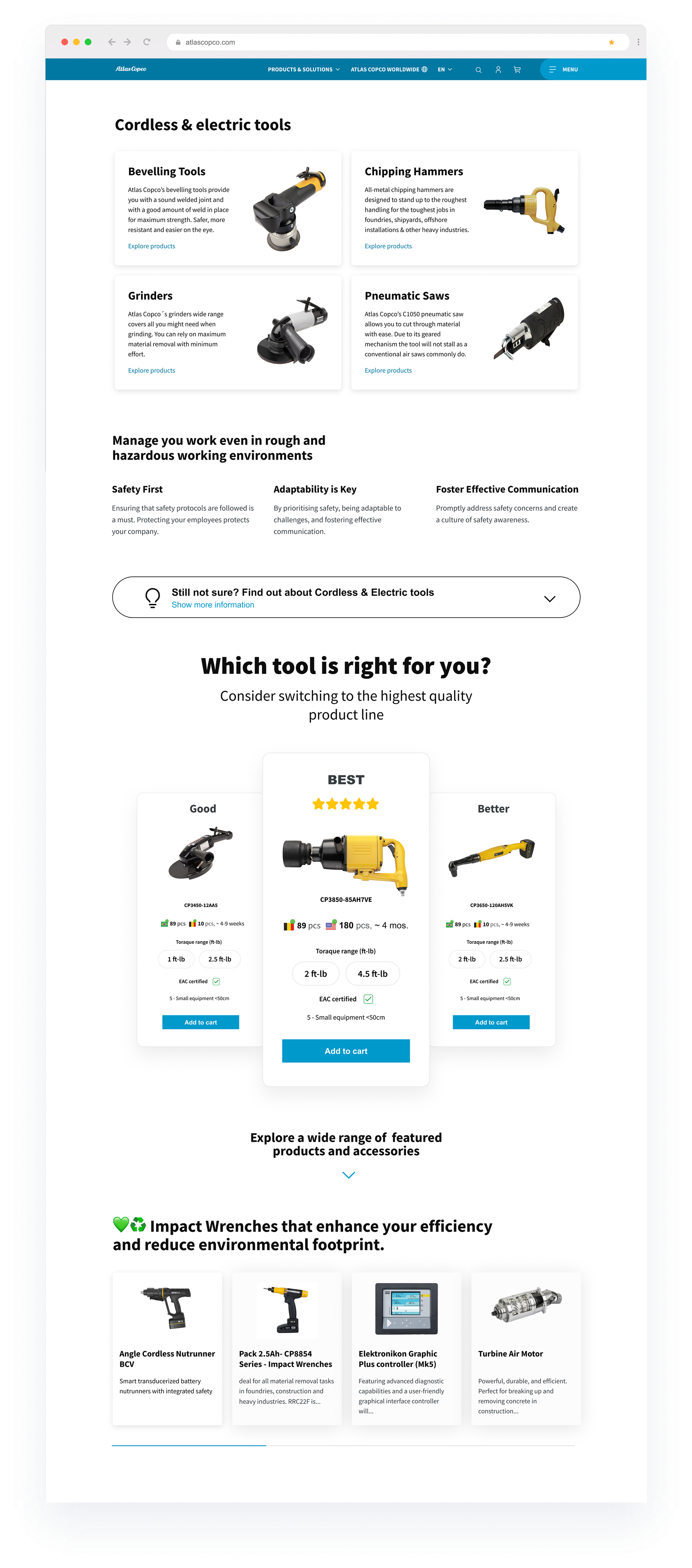 The goal was to streamline B2B online shopping for Atlas Copco, aiming to save time for sales personnel, reduce offline selling costs, and enhance user satisfaction. This entailed aligning digital experiences with the diverse needs of engineers, sales teams, distributors, marketing departments, and end customers while navigating global market complexities and legal requirements.